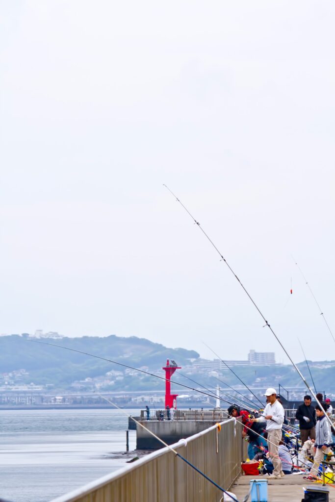 釣り場には、釣り人以外にも散歩をする人や写真を撮る人、地元の漁業関係者などがいます。