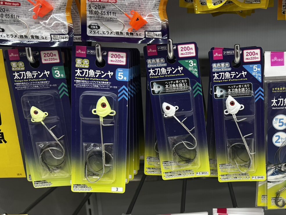 今回我らがダイソーさんの太刀魚テンヤとワインドを使用します!!コスパ最強!!