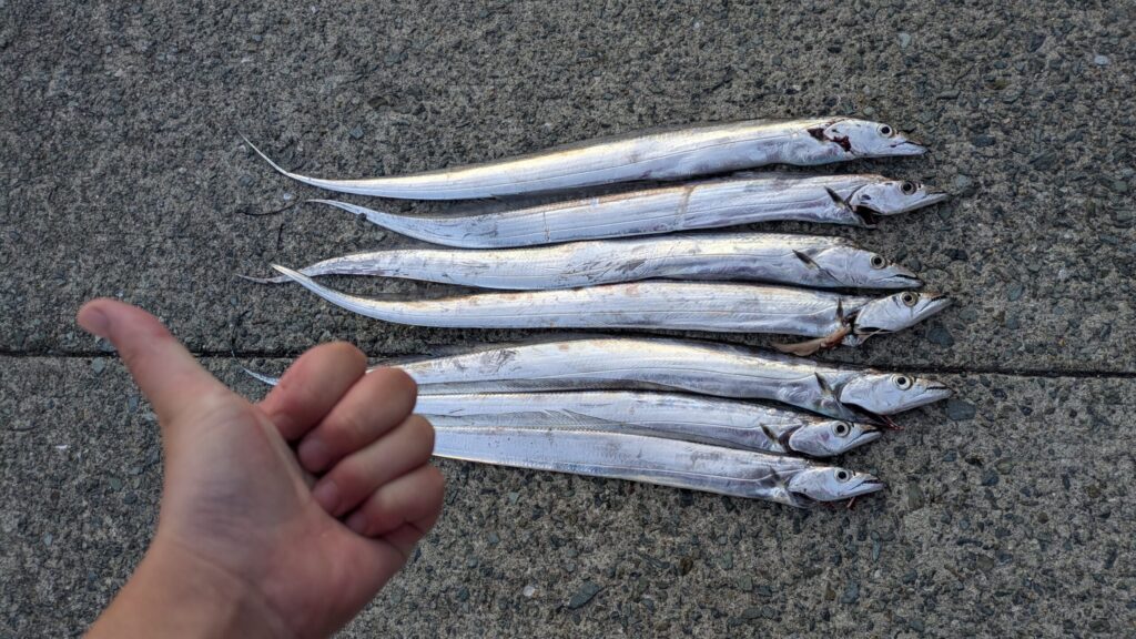 この日は4時間の間に8本キャッチでき、まさに太刀魚ラッシュでした。